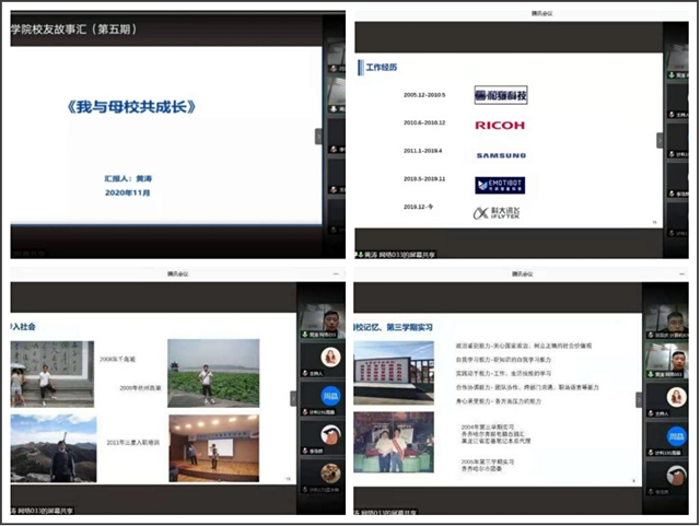 主讲嘉宾黄涛,2003级计算机专业毕业,2006年被评为黑龙江省优秀毕业生,现任科大讯飞股份有限公司智能服务事业部行业总监。他以《我与母校共成长》为主题,从个人成长经历、对母校的记忆、步入职场的收获、人工智能行业发展等方面,与大家云端谈感悟、话人生、说前景,并以彩蛋形式内推了科大讯飞招聘信息。