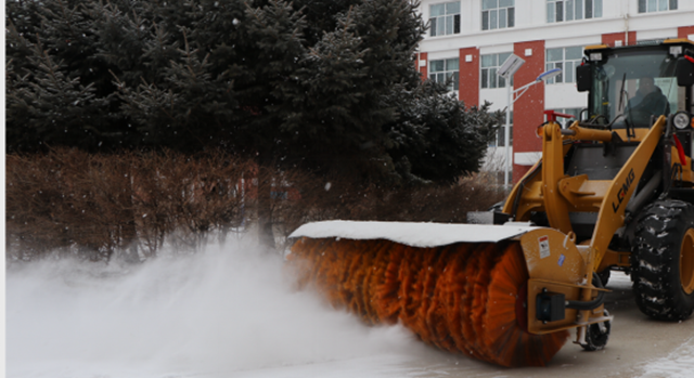 (图为高飞驾驶清雪车在校园清道)