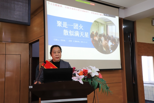 为展现市先进集体和劳模的强烈责任意识、无私奉献精神和首创精神,引导全校教职工爱校、爱岗、敬业,以优异成绩向建党100周年、创校30年献礼,5月15日,永利劳模先进事迹报告会在图书馆601报告厅隆重召开,会议采取线上线下相结合形式,全体教职工参加会议,工会副主席王丽萍主持大会。