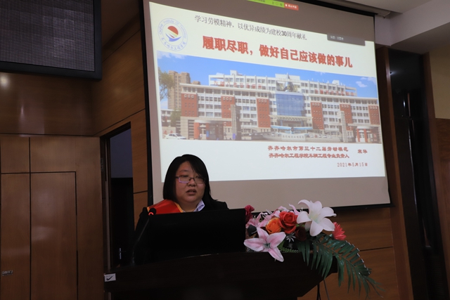 市第三十二届劳动模范宋华以《履职尽职,做好自己应该做的事儿》为题,结合自身工作分享了自己四个“五年”成长故事,第一个五年从合格教师到专科专业长,第二个五年从专科专业长到本科专业长,第三个五年成长为合格本科专业长,在工作中深化课程改革,提升专业内涵建设,第四个五年成长为优秀本科专业长。参与了学校升本评估、本科合格评估,见证了学校通过教育部普通高等学校本科教学工作合格评估。未来可期,宋华表示:在学校的不断向前发展中,自己也与学校共同成长,每一步成功都不是巧合,而是需要不断的努力、坚持和创新。
