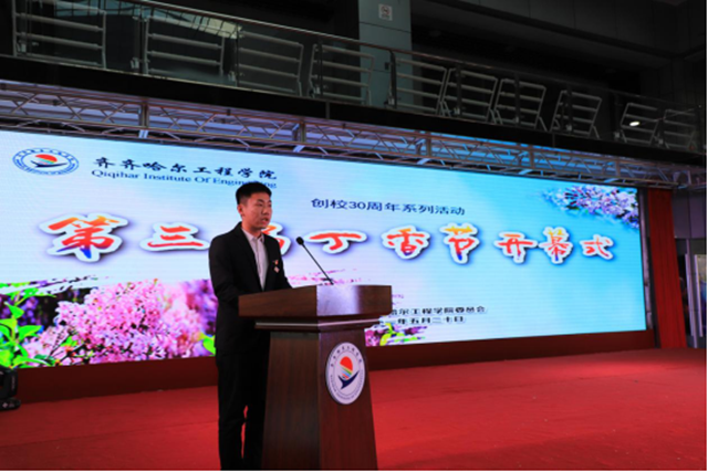 随后曹勇安理事长做了重要讲话,他向同学们讲述了学校的发展历程,丁香节的校园文化意义。首先他对校园种植丁香的初衷和重要意义做了深入阐释。他讲到,满园丁香是学校留给学生的隐性课程,更是留给学生毕业后的珍贵回忆。他用丁香花的看似平凡,但花香万里,来鼓励学生在平凡的生活中创造出伟大业绩,勉励学生要像丁香花坚韧顽强,美丽向上,生机勃勃。“聚小朵而成大气,抗艰难而争上游”,他希望学生今后走到世界任何地方,闻到丁香花香都会回忆起大学生活。最后,曹勇安理事长祝愿丁香节系列活动顺利开展,并希望同学们通过活动深刻理解丁香内涵,学习丁香精神,让丁香的芬芳永远根植于齐工程师生的心中。