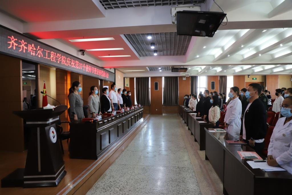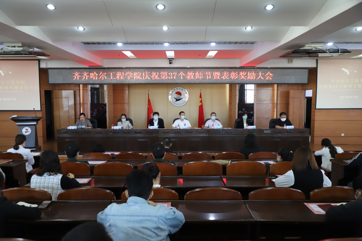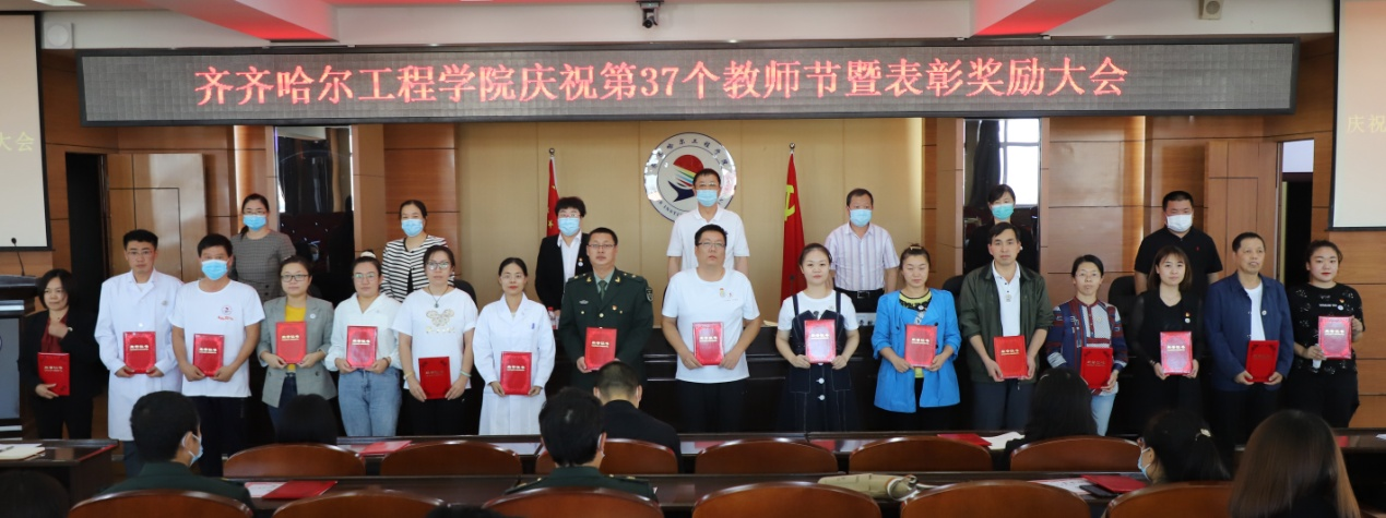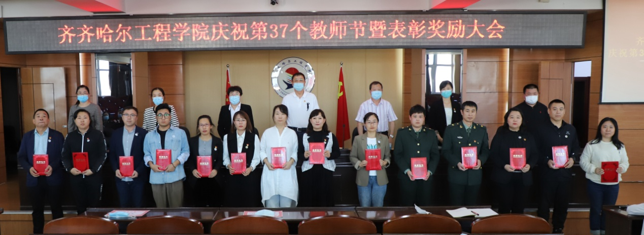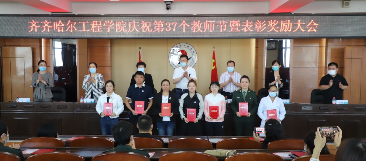 为表彰先进,进一步加强师资队伍建设,营造尊师重道的良好氛围,9月10日下午,学校举行庆祝第37个教师节暨表彰奖励大会,校领导曹勇安、曹然彬、张长娟、蒋春艳、姜岩、张振笋、白雪,以及各部门负责人、获奖教师和获奖部门代表,遵照防疫要求戴口罩间隔就坐,在图书馆601参会,其他教职工线上收听、收看。