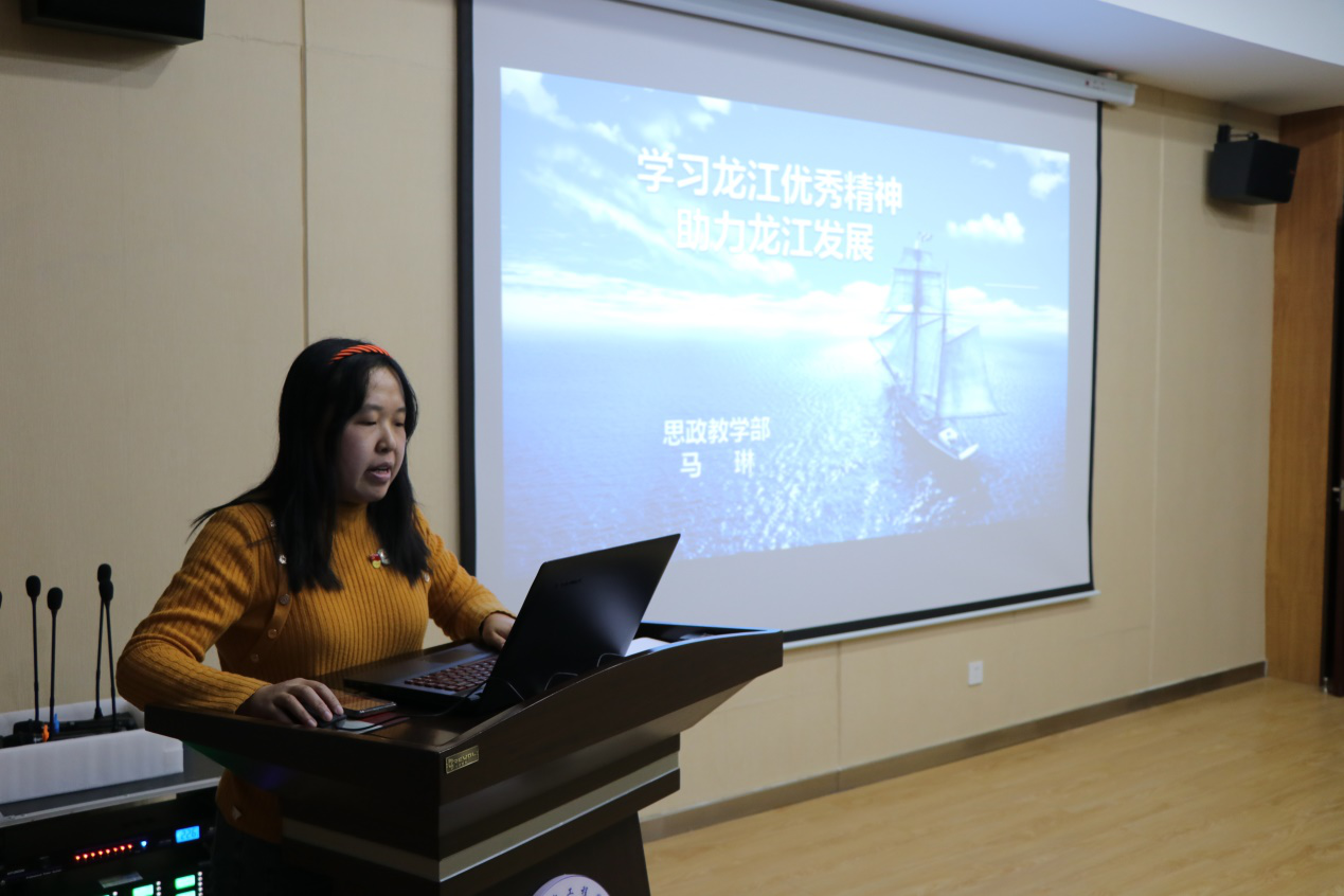思政教学部马琳老师以《学习龙江优秀精神 助力龙江发展》为题进行党史学习教育专题讲座。从龙江精神内涵、国家关于振兴东北的主要政策、黑龙江振兴发展的新特征和大学生对龙江振兴的意义四个方面进行讲述,重点指出永利学生关于创业的认识与做法,彰显了龙江大学生的时代风貌。随后传达了上级文件精神,开展了思想政治工作等三个专题学习。