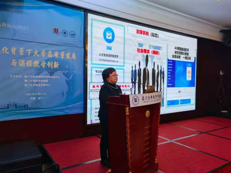 潘宇教授在论坛上作了《AI赋能高校课程建设新模态》的报告。报告从信息技术视角,以学校牵头研发的“课程通”智慧系统为例,阐释课程建设的根本原理及技术驱动课改的方向与方法。