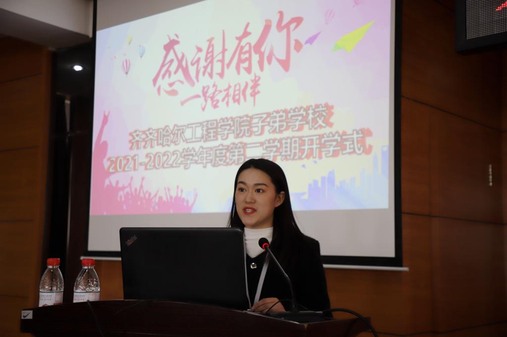 子弟学校副校长、学校创业学院副院长、学生发展中心负责人康静介绍了子弟学校2021-2022学年度第二学期的开课情况。