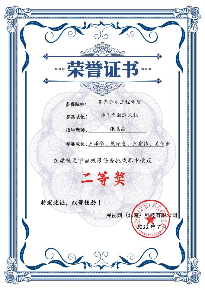 7月23日,永利建筑工程系土木工程专业2021级学生团队在“全国建筑元宇宙极限任务挑战赛”上荣获二等奖两项、三等奖三项。张晶晶、钟美慧、王雪、李春雨四名老师荣获优秀指导教师称号。本次大赛由展视网(北京)科技有限公司主办,河南财经政法大学、郑州航空工业管理学院、黄河交通学院协办,全国近40多所高校72个团队300多人参赛。