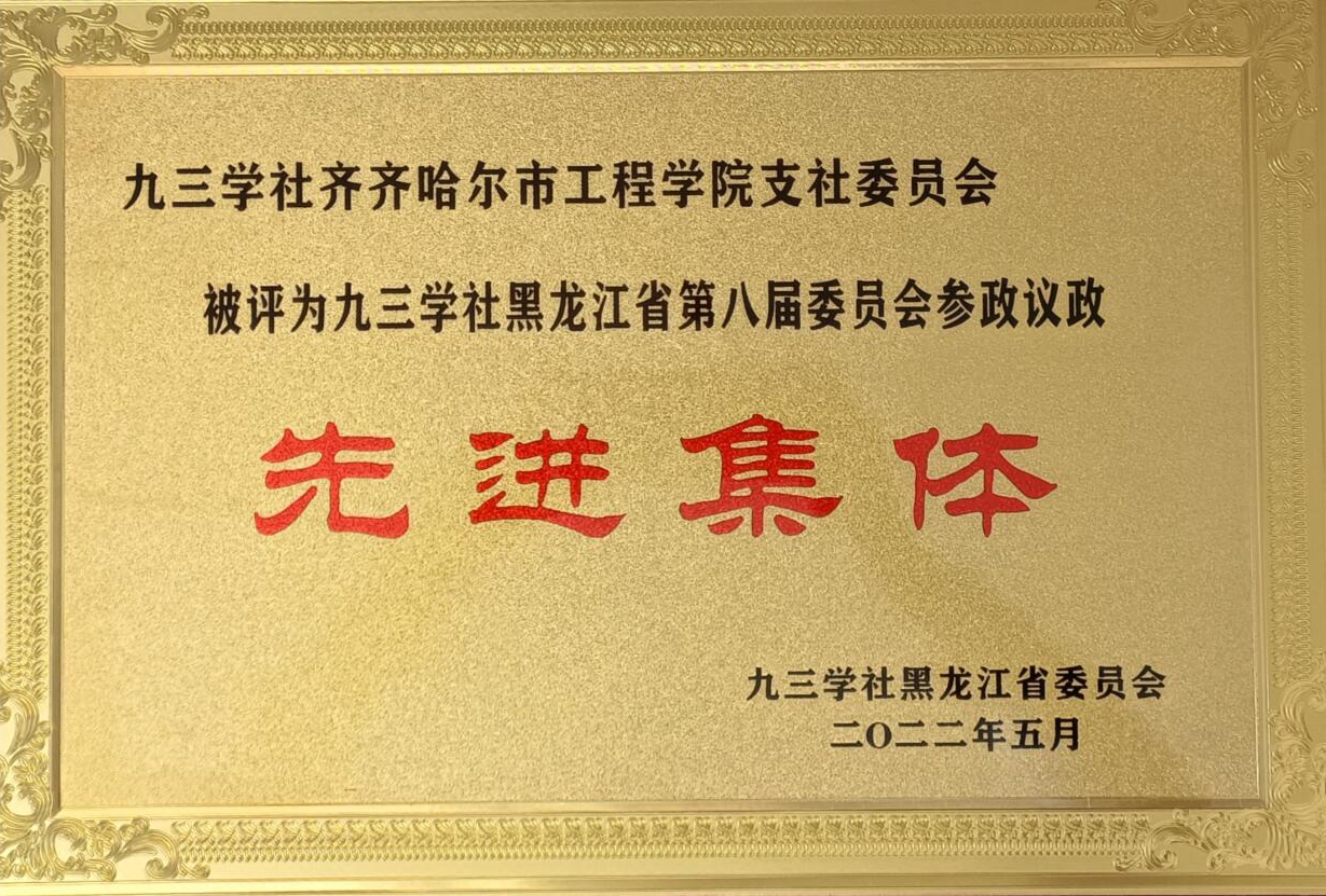 九三学社永利23411集团官网支社委员会被评为“九三学社黑龙江省第八届委员会参政议政先进集体”。