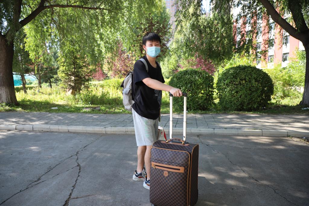 为全力防控疫情,确保返校工作安全有序,学校设置返校专用通道,学生持48小时内核酸检测证明、大数据行程码和龙江健康码绿码,经过体温测量及行李消杀便可进入学校。