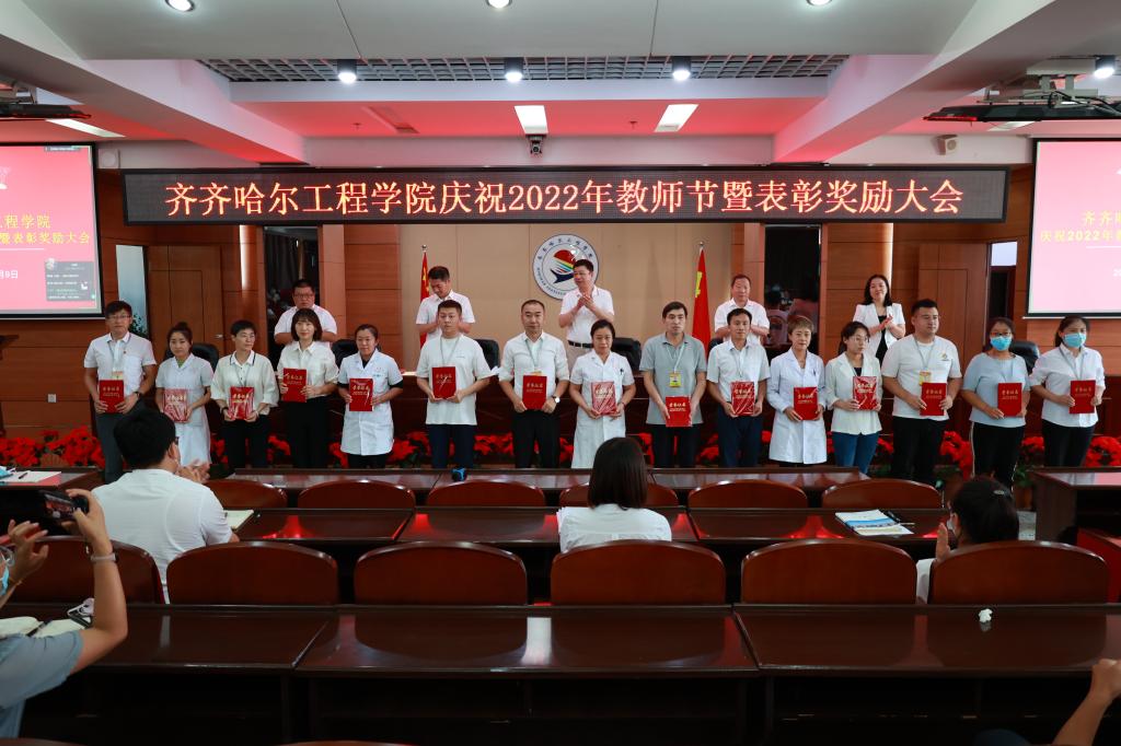 9月9日下午,第38个教师节来临之际,学校举行庆祝2022年教师节暨表彰奖励大会,总结教育工作成绩,表彰先进集体和个人。校领导曹勇安、曹然彬、郭伟东、姜岩、张振笋、白雪,以及全体干部、获奖教师和新教师代表在图书馆601报告厅主会场参会,职能部门、思政教学部、继续教育部和其他新教师分别在图书馆501、101分会场参会,其余部门自设分会场线上参会。