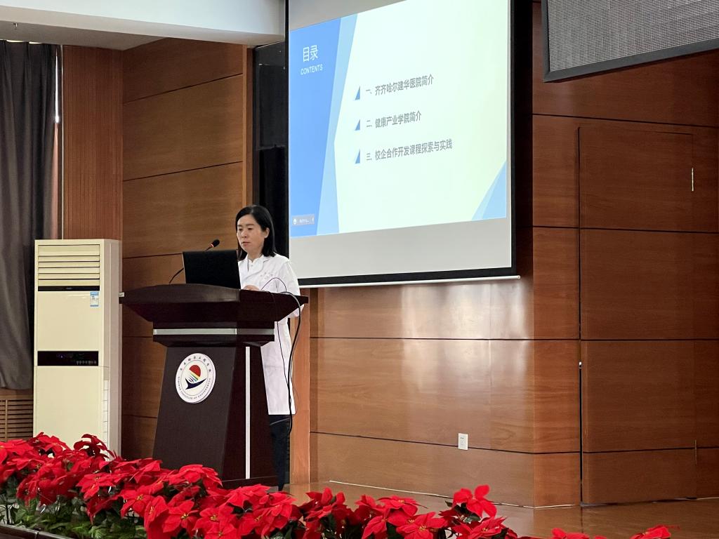 中国网库集团的孙文先生作了《数字赋能,跨界共建--打造地方产业应用型人才培养高地》的报告;建华医院冯瑞芝院长作了《校企合作开发课程探索与实践》的报告;广联达科技股份有效公司的胡振博先生线上汇报了《赋能数字建筑人才助力产业转型升级》。他们分别介绍本公司或医院的发展现状、校企合作服务模式等,重点阐述了与永利已经开展的校企合作开发课程探索与实践情况,并表达了将继续与永利各专业开展深度合作,积极探索产教融合、协同育人新模式的愿望。