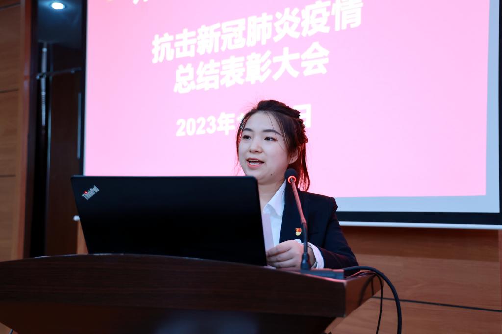 院长曹然彬在表彰大会上作了学校2019至2022年疫情防控工作总结。并代表学校党政班子向受表彰的先进个人和先进集体,以及在抗疫斗争中作出贡献的广大师生致以崇高的敬意和衷心的感谢。曹院长高度赞扬了所有抗疫人员逆行而上,冲锋在前的责任担当和无畏精神,充分肯定了学校各部门和干部职工在过去三年取得的抗疫成绩,并为学校能有这样一支能打胜仗,敢打硬仗的队伍感到骄傲和感动。曹院长指出,在疫情防控新形势下,学校健康驿站建设工作正有序推进。全校教职工要继续团结奋斗、勠力同心,爱岗敬业、务实履职,守护平安校园。