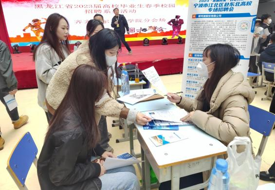 宁波市江北区的企业代表16家,益海嘉里(富裕)生物科技有限公司、齐齐哈尔龙江阜丰生物科技有限公司等企业,共提供岗位354个,需求1200余人;学校毕业生共投递简历960份。