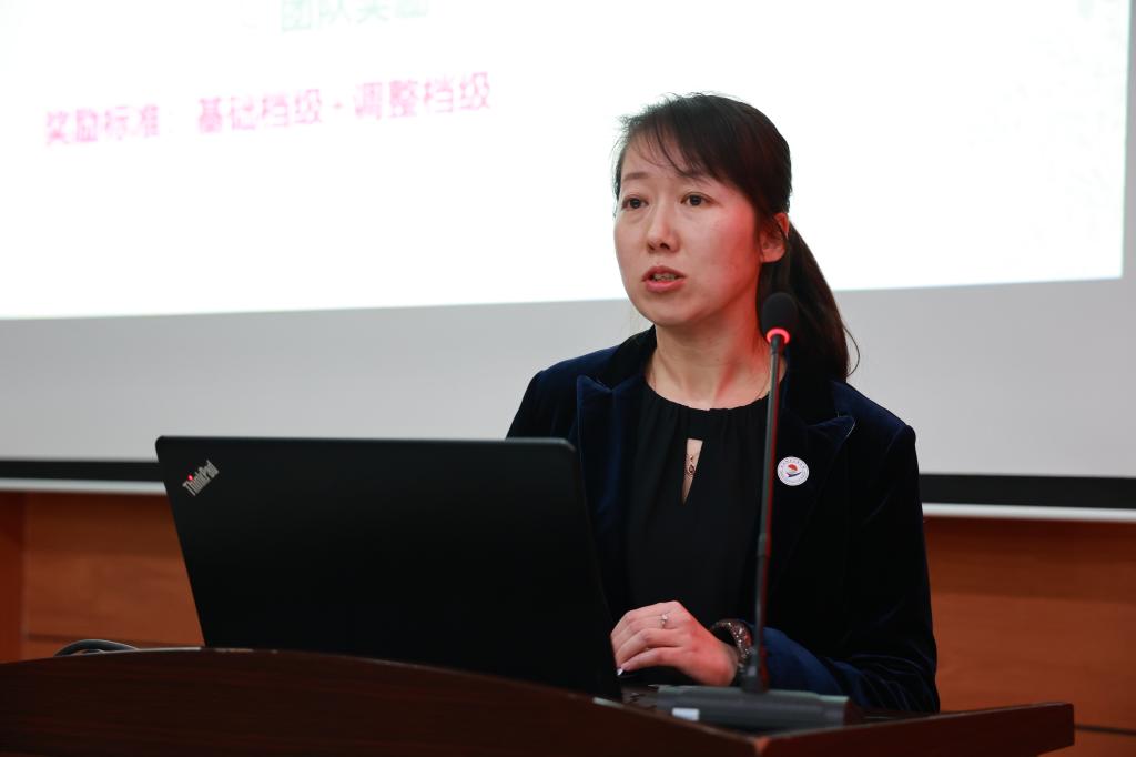 教务处副处长冯洁作教学质量奖评选工作情况汇报。依据审核评估要求,介绍个人奖励和团队奖励评定结果,指出教学质量奖评定以课堂质量、FT课程建设、教研成果为导向,以FT为平台,以审核评估为抓手,以教学成果奖为目标,凝练学校办学特色,全面提升教学质量。