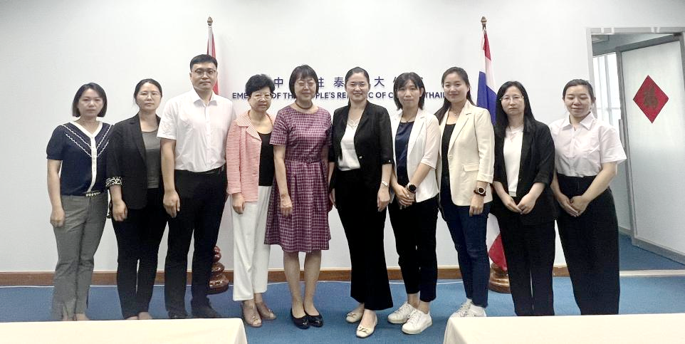 考察团一行在中国驻泰王国大使馆受到冯俊英教育参赞的亲切接见,参加交流的还有大使馆教育处一等秘书、北京邮电大学经济管理学院执行院长王欢教授。