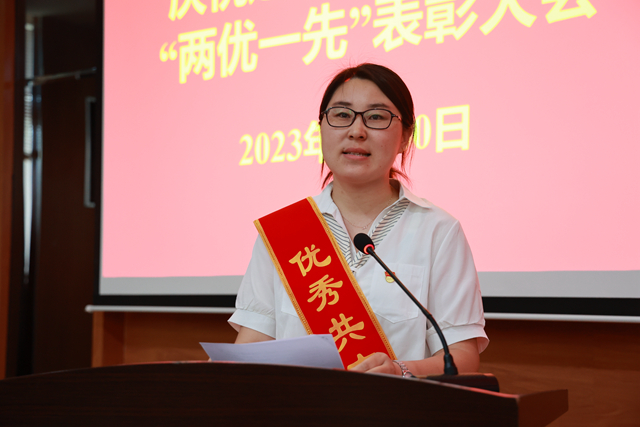 党委委员、院长助理陈景鑫同志宣读表彰决定:授予王文晶等38名同志“优秀共产党员”称号、授予王丽萍等11名同志“优秀党务工作者”称号、授予建筑工程系党总支等9个党组织“先进基层党组织”称号。希望受到表彰的优秀个人和先进集体,珍惜荣誉、戒骄戒躁,继续发扬模范带头作用,再接再厉、再创佳绩。