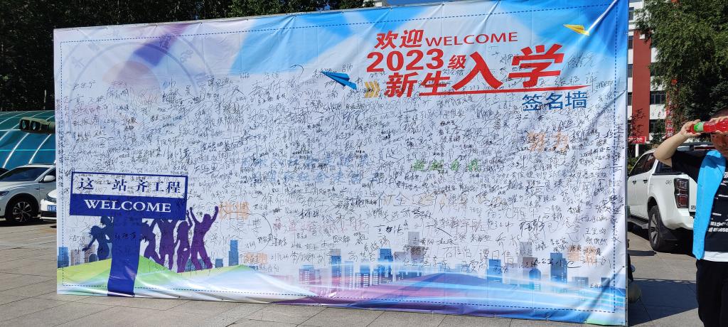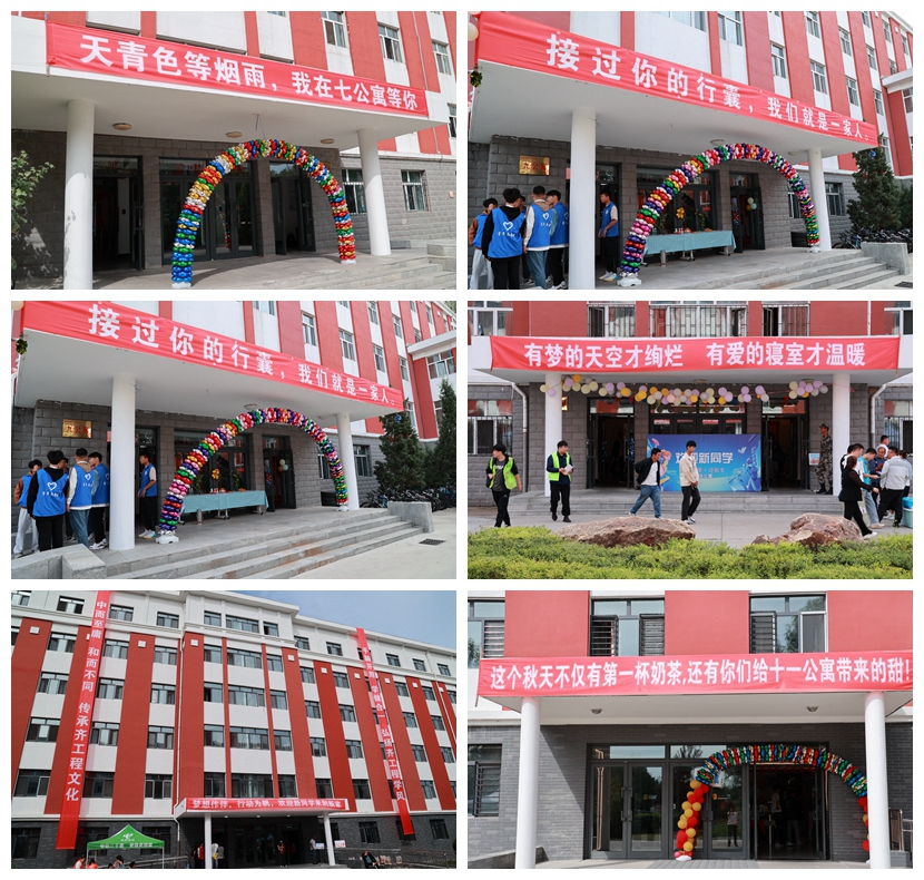 校园里随处可见的迎新横幅,高大鲜艳的彩虹门、飘扬的红旗、欢迎新生的展板,广播中轻松欢快的歌曲,整个校园洋溢着喜庆、欢乐的气氛,学校敞开怀抱,迎接来自五湖四海的学子。