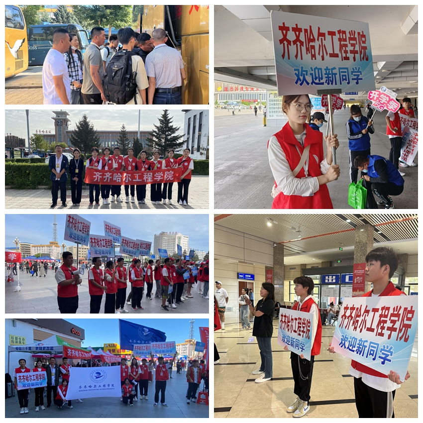为方便外地新生入校,学校在齐齐哈尔南站、齐齐哈尔站、飞机场设立三个迎新接站工作点,组织教职工和300余名学生志愿者从7.30至晚上18点为新生提供全程式“一对一”、“多对一”志愿服务,六辆大巴车不间断接送新生,确保了学生报到工作顺利完成。