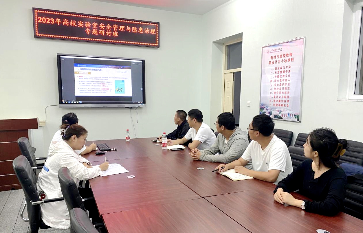 近日,教务处实践教学科在一号教学区2104会议室线上开展实验室安全系列培训。薛文晔、何轩皓、国贺阳、杨伟哲、李阳、边宇卓、王奇7名实验技术人员参加。