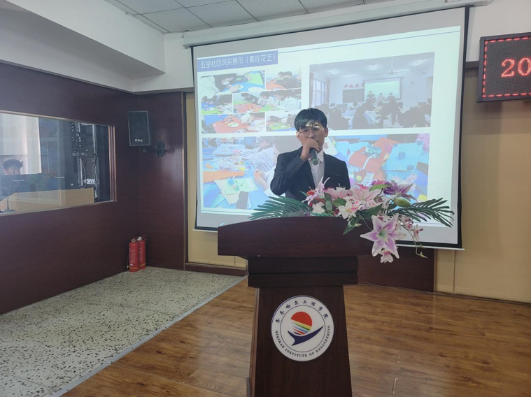 校社联主席李海澎做2022—2023学年度第二学期社团工总结,宣读学生社团整改、注销名单的通知。