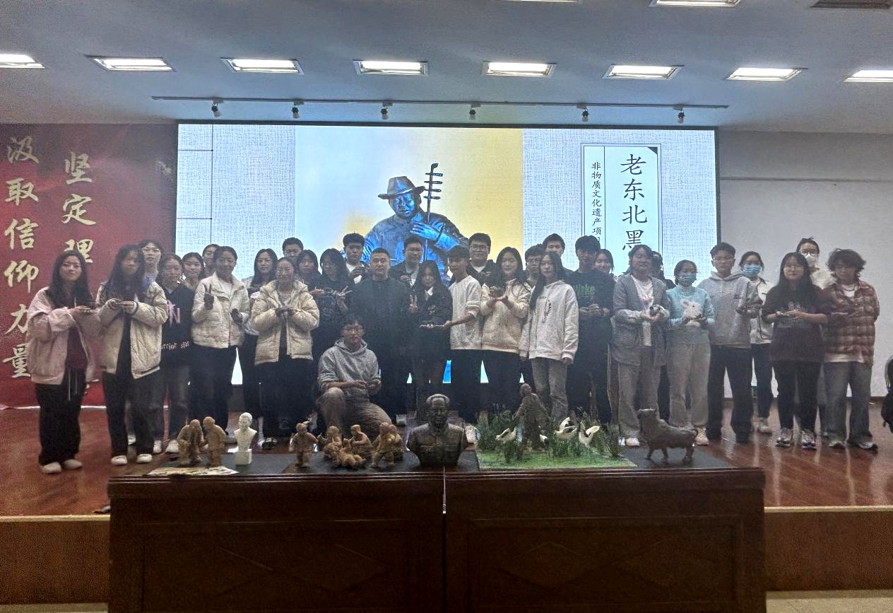 10月18日下午,东北黑土泥塑传承人韩朝阳老师在二号教学区2508教室开展以非物质文化遗产《东北黑土泥塑》为主题的第二十一期美育课堂。课上,韩老师介绍了本次展出作品背后的故事及其文化渊源,并让学生自己动手制作泥塑,使学生加深对中华传统优秀文化的热爱,不断地提高艺术修养,提升审美情趣,为弘扬和传播优秀文化贡献青春力量。