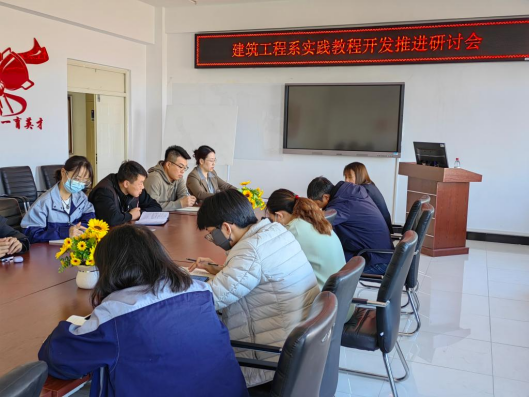 为深入贯彻落实习近平总书记关于教材建设的重要论述和系列指示、批示精神,凝练建筑系校园北区校外课堂建设成果,充分发挥教材在课程建设和人才培养中的作用,11月14日上午,建筑工程系在2号教学楼2409室召开建筑实践教程开发推进会。会议由建筑工程系党总支书记、副主任徐明主持,学校基本建设办公室主任崔晓东、建筑工程系教学副主任郝丽娜、建筑系教师及参编人员参加本次会议。