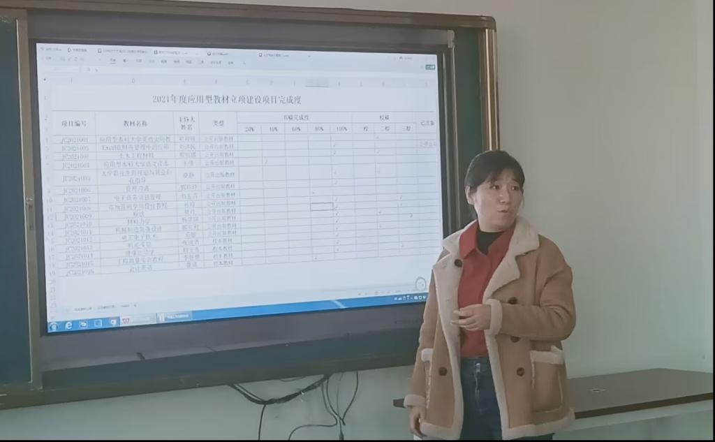 王丹处长强调,各系要严格按照毕业设计(论文)文件要求,加强毕业设计(论文)过程管理,保质保量完成毕业设计(论文)工作;人才培养方案的修订要立足地方性、应用型的办学定位,立足调研论证,突出经济社会中新技术、新产业、新业态的发展趋势;同时强调须加紧进行应用型教材的立项建设,积累课程资源,以切实提升学校的教学质量和育人水平。