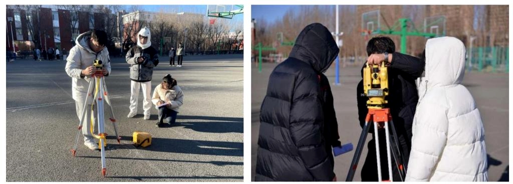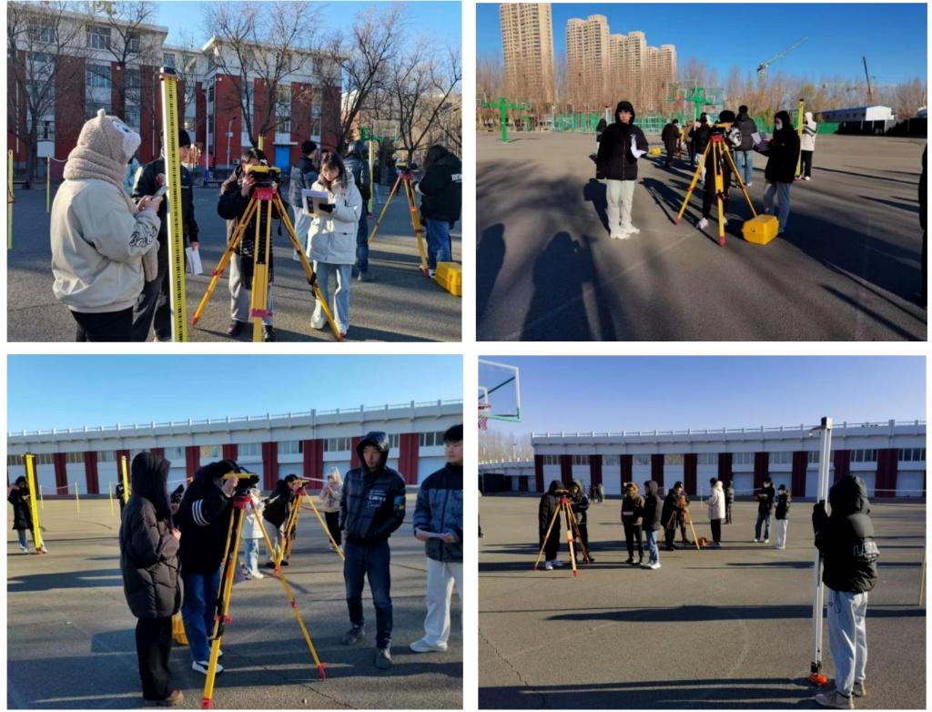 结合基础工程施工测量任务,学生们利用水准仪、经纬仪和全站仪开展技能竞赛,本次比赛设置了不同难度级别的测量任务,既有简单的室内测量,也有复杂的户外测量。参赛队员们从规范操作流程开始,经过精确的读数和计算,最终给出了准确的测量结果。