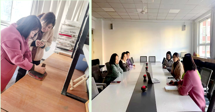 国家教育部提倡将非遗人才培养摆在国策重要位置,全面推进将非遗传承特长纳入国民教育体系和学校美育工程,强化非遗专业建设,培育人才力量。11月24日,信息工程系教学工作副主任姜岩与视觉传达设计专业负责人任杰,赴山西工商学院进行山西木板年画非物质文化遗产工作室考察。