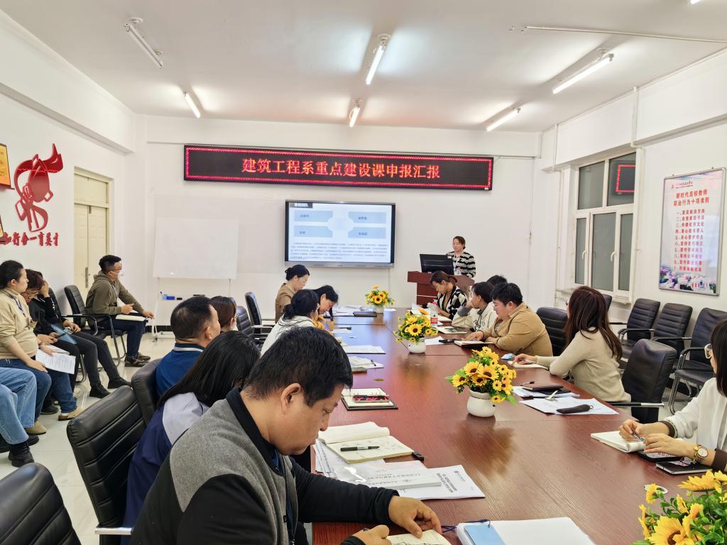 为深入推进教学改革,提高人才培养质量,满足创新型、应用型人才培养目标的需要,鼓励教学和科研成果突出、与企业合作基础良好的教学团队编写教材,促进学校教材建设以及重点课程的建设,近日,建筑系在2号教学区2409会议室召开校级重点建设课程及校级应用型教材立项汇报会,会议由教学副主任郝丽娜主持,建筑系党总支书记、副主任徐明,党总支副书记刘贤鹏以及建筑系全体教工参会。