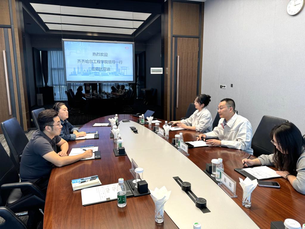 30日上午,敖林喆一行赴比亚迪股份有限公司(深圳总部),校企合作部经理杨双喜对教师们的到来表示欢迎。比亚迪2011年上市,是中国新能源汽车行业的领军者,公司业务已经覆盖到汽车、轨道交通、新能源、电子四大领域。