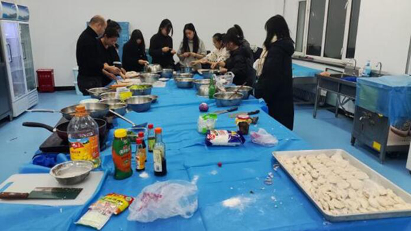 学生在陈茂松老师的带领下走进农贸市场,在一个个摊位前用心挑选自己爱吃的食材。回来后,大家开始洗菜、剁馅、和面、擀皮、包饺子、煮饺子。活动现场气氛热烈,洋溢着学生的欢声笑语。