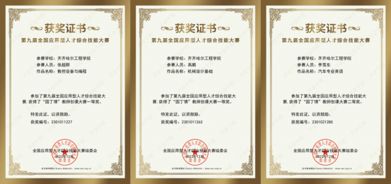 12月12日,第九届全国应用型人才综合技能大赛成绩揭晓。机械设计制造及其自动化专业靳可新等学生在机械创新、机械基础、先进成图实验室完成的“基于超宽带技术的精准短距离定位与电动汽车无线充电系统”等7项作品,荣获全国一等奖1项,二等奖2项,三等奖5项,于晓玲等5位教师荣获优秀指导教师。汽车服务工程专业张馨允等学生,在汽车设计、汽车构造实验室完成的“声声不息”智能听障社交辅助系统”等作品,荣获全国一等奖1项,三等奖1项,邓敏等3位教师荣获优秀指导教师。电气工程及其自动化专业苗欣等学生,在电子实验室、电气控制综合实验室、PLC实验室完成的“甘霖”—太阳能智能制水机等作品,荣获全国二等奖1项,三等奖1项,高鹏等4位指导教师荣获优秀指导教师。
