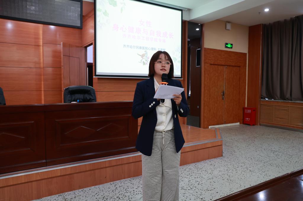 为庆祝第114个“三八”国际劳动妇女节,3月7日,健康与护理系党总支特邀齐齐哈尔民康医院心理科主任王彦军为全校女性师生进行《女性身心健康与自我成长》专题讲座。讲座在图书馆601会议室举行,由护理系党总支书记张林琳主持,全校200多名师生参加。