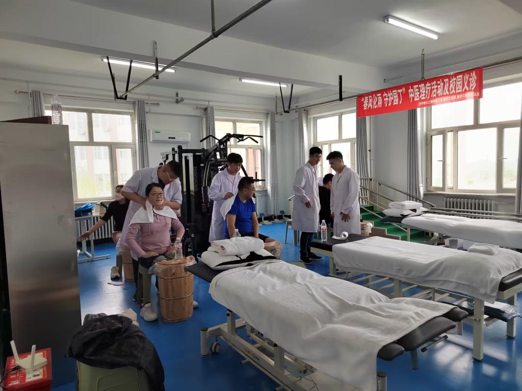 康护工程系孙强、吴迪等6名优秀教师带领大新推拿社、护理院创业团队20余名学生为14个部门69名教职员工提供康复冲击波理疗、艾熏仪理疗、肩颈推拿、中草药浴足等4项中医理疗服务,血压血糖检测、心电监护及慢性病预防宣教等3项义诊服务,体现永利“FT”课程建设中的“在真实的环境,真学、真做、掌握真本领”。