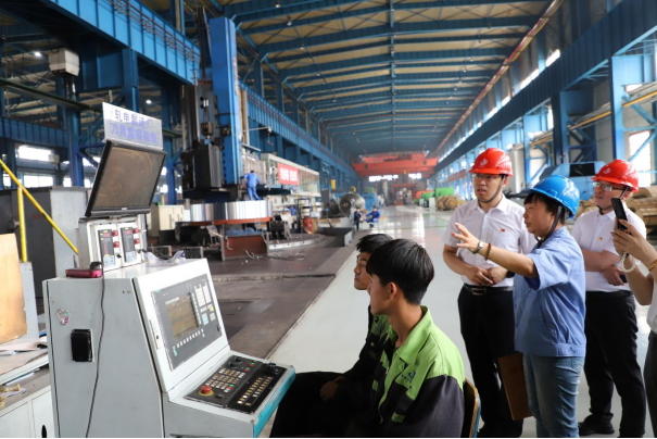 学校一行受到了中国一重的高度重视,中国一重工会女工生活部部长宋照辉,中央企业劳动模范、全国技术能手、龙江工匠王国峰作为讲解员接待了学校师生。在王国峰的带领讲解下,学校师生和企业代表参观了中国一重的王国峰工作室、热处理车间、加氢反应器制造车间、万吨水压机等重要设备设施。