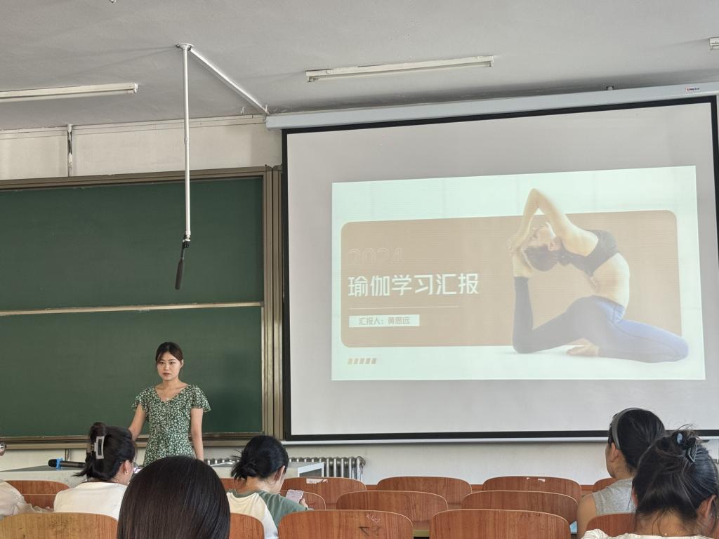 会上,刘晓懿带领魏颜、陈凯悦、燕越颖和郭冰倩四名教师进行瑜伽体式展示,期间与教师们进行互动,教授教师们简单的肩颈训练,与会人员跟随刘晓懿练习,纷纷表示肩颈舒展,效果明显。