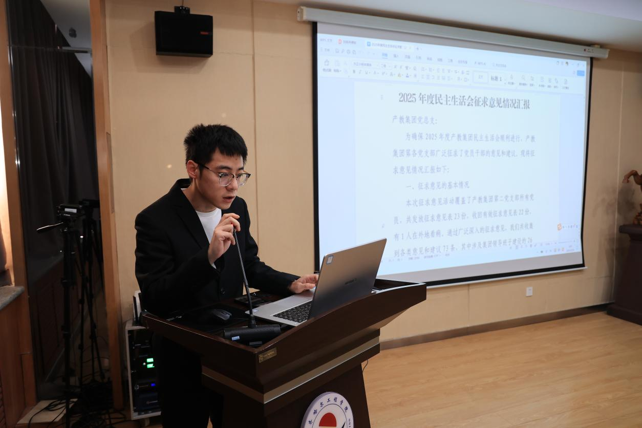 2月24日上午,齐工产教集团在图书馆603会议室召开民主生活会,会议由党总支书记成超主持。集团总经理崔晓东、副总经理单大海、党总支组织委员宋兴蕾、党总支宣传委员倪柏亮参加会议。