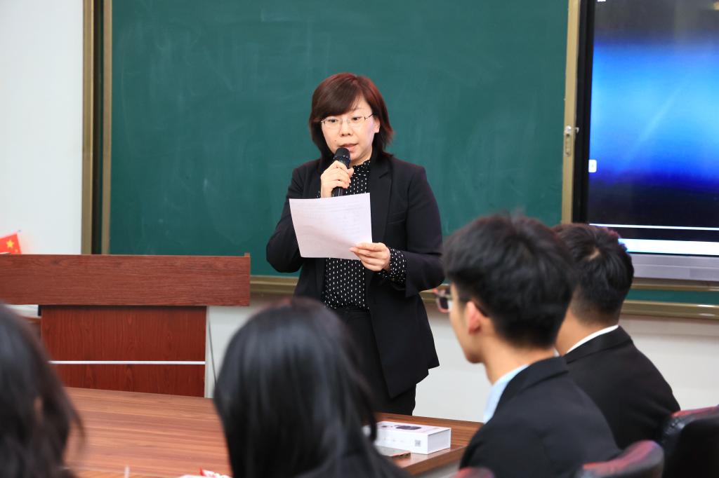 本次换届第一项为竞聘环节,参与竞聘的学生围绕个人优势、工作规划等进行演讲。与会教师提问与点评,并现场打分,根据综合评分,确定本届融媒体中心干部的最终人选。