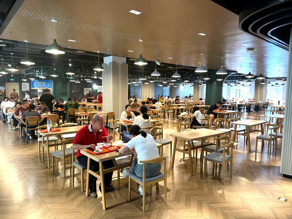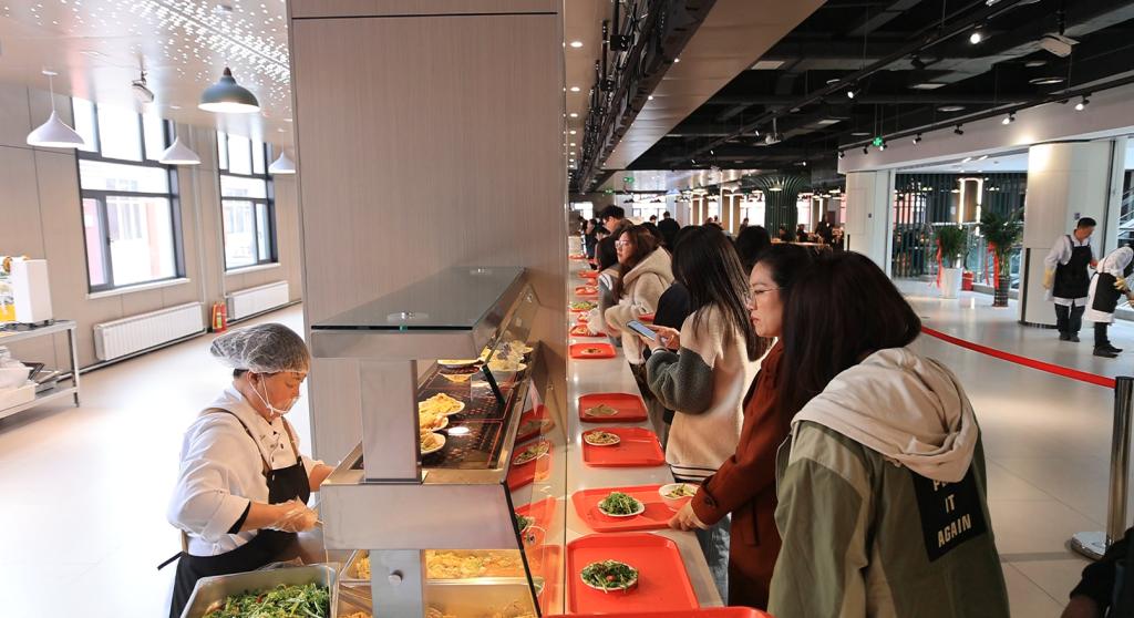 知甘堂餐厅采用现代化明厨亮灶设计,让食品加工过程透明可视,食客可以亲眼看到厨师们精心制作美食的每一个环节,吃得更加放心。温馨的环境依托智慧系统实现高效运营,无感支付结合菜品自动识别技术,让就餐人员在 30 秒内就能完成结算,大大节省了用餐时间。餐具自动回收系统搭配大型洗消一体机,进行智慧清洁,全方位保障用餐安全与便捷,让食客享受无忧的用餐体验。
