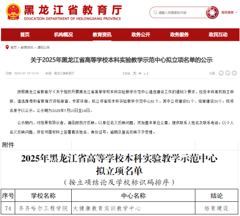 近日,黑龙江省教育厅公布了2025年黑龙江省高等学校本科实验教学示范中心拟立项名单。学校申报的“大健康教育实训教学中心”成功获批培育建设项目。这是永利首次获批省级实验教学示范中心培育项目,实现了零的突破。