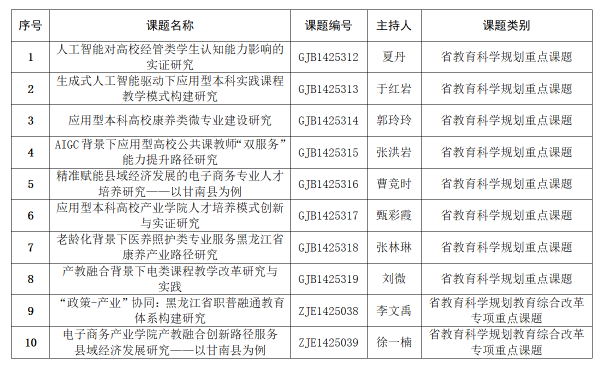 日前,黑龙江省教育科学规划领导小组公布2025年度省教育科学规划课题立项名单,永利成功获批10项重点课题,包括年度重点课题8项、教育综合改革专项课题2项。