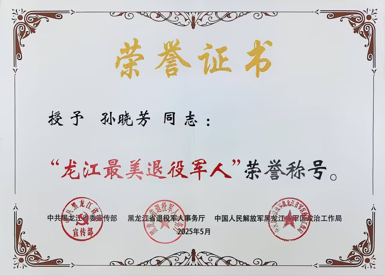 此次当选,孙晓芳同志成为龙江退役军人“戎装虽改、初心不变”的生动缩影,也充分彰显了退役军人在新时代所肩负的使命与担当。