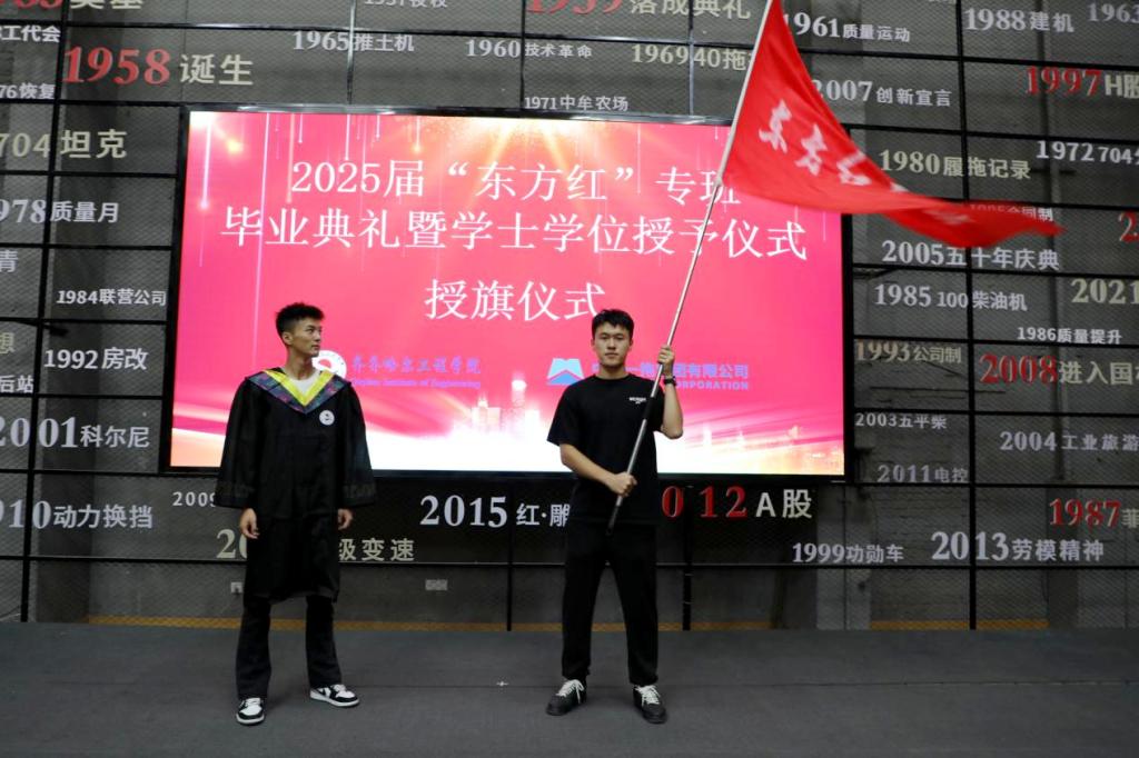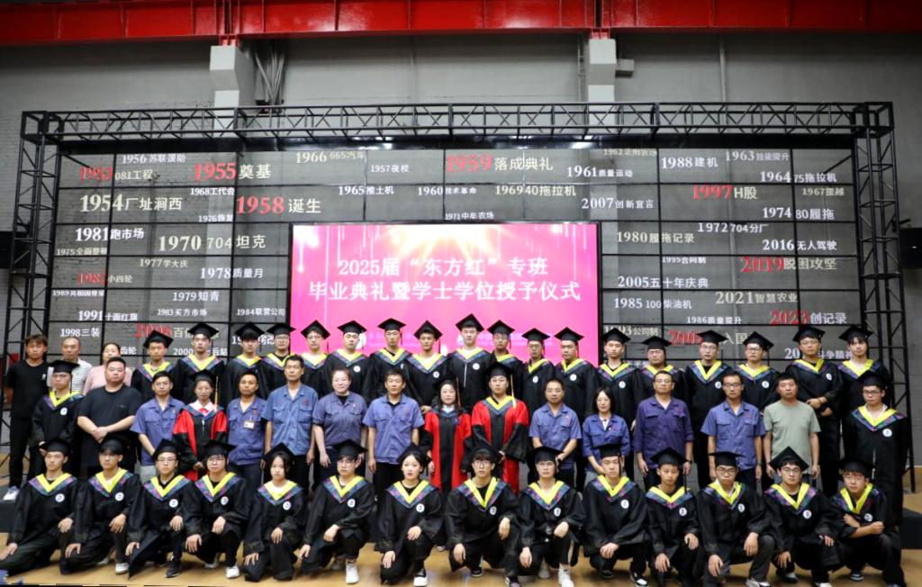 7月30日,学校2025届“东方红”专班毕业典礼暨学士学位授予仪式在中国一拖集团党建活动中心举行。永利23411集团官网副校长张静,机电学院院长敖林喆,中国一拖集团有限公司人力资源部(党委干部部)部长朱永生、副部长周祖伟,人才开发科科长郭婧、副科长王路,“东方红”二期专班毕业生及家长共同参加毕业典礼。