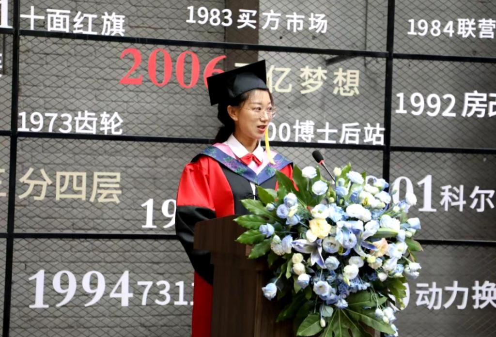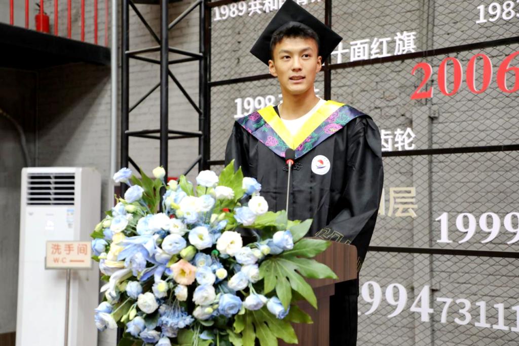 毕业典礼由机电学院机械学生党支部书记肖璐主持。肖璐首先介绍了“东方红”二期专班基本情况,专班有49名学生,校企双方共建2门特色课程,聘请23名企业工匠与高级工程师担任毕业设计指导教师。同时,通过近1年的校企联合培养,目前34名学生已与企业签订就业协议,央企就业率达到69.39%。