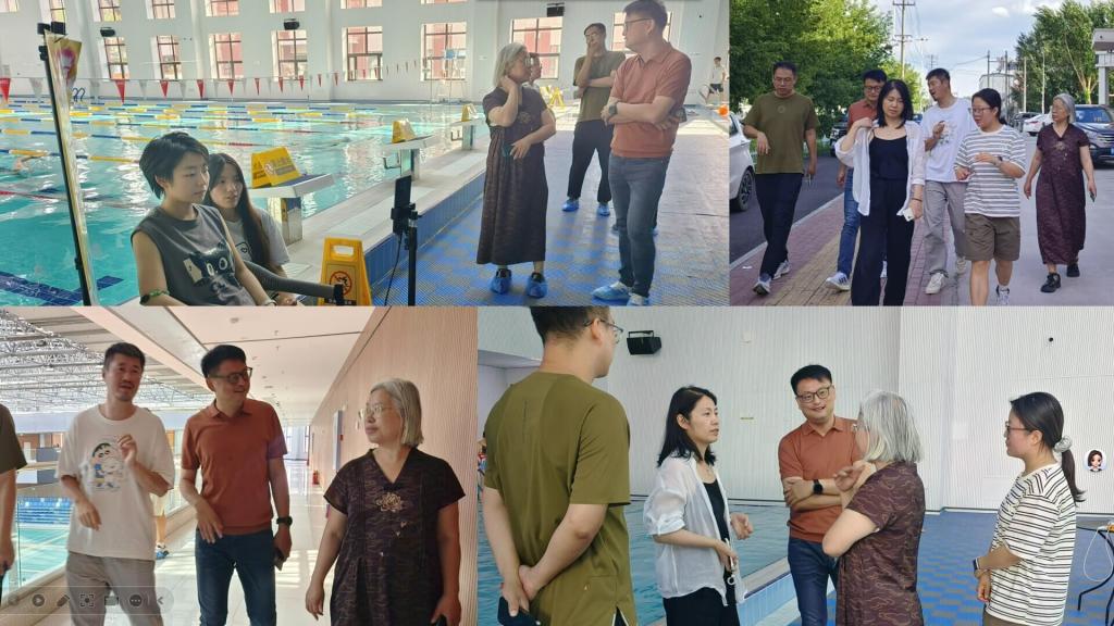 在体育馆调研过程中,段洪代副总经理重点观摩了学生直播团队的操作流程,对他们的专业表现给予充分肯定,并与集团业务现状进行对比分析,寻找技术应用层面的优化空间。他还现场向指导教师咨询了直播技术细节,与营销部经理就技术落地思路展开交流。在游泳馆直播区,段洪代详细察看了直播数据和技术应用效果,并就直播技巧、设备配置等关键问题与师生深入探讨,初步形成了技术引进与合作意向。