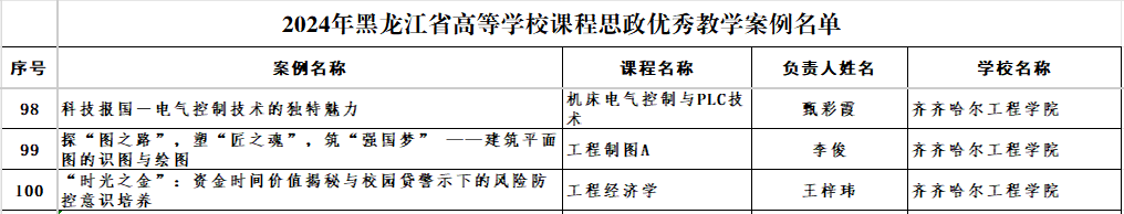 近日,黑龙江省教育厅对第五批高等学校课程思政示范课程和教学团队培育项目、2024年课程思政优秀教学案例名单进行公示。根据公示结果,永利共1门课程入选示范课程和教学团队培育项目,3门课程获评优秀教学案例,课程思政建设再获佳绩。医学院张林琳老师的《基础护理学技能实训Ⅱ》课程入选课程思政示范课程和教学团队培育项目;机电学院甄彩霞老师的《科技报国——电气控制技术的独特魅力》、土木与管理学院李俊老师的《探“图之路”,塑“匠之魂”——建筑平面图的识图与绘图》、土木与管理学院王梓玮老师的《“时光之金”:资金时间价值揭秘与校园贷警示下的风险防控意识培养》3门课程入选课程思政优秀教学案例。