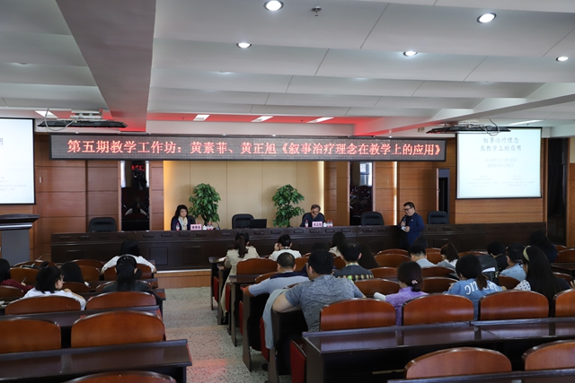 9月10日上午,应学院教师发展中心邀请,台湾生涯发展与咨询学会理事长、阳明大学教授黄素菲和台湾商业大学教授黄正旭做客学院第五期教学工作坊,与来自各系、各部门的100多位教师主讲《叙事治疗理念在教学上的应用》。学院副院长、教师发展中心主任张振笋主持活动。