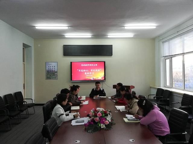 10月10日下午,思政教学部党支部组织“不忘初心、牢记使命”主题教育集中学习,支部书记魏军主持学习,党员李卓领学《习近平关于“不忘初心、牢记使命”论述摘编》中“用新时代中国特色社会主义思想武装全党”内容,并结合日常工作分享自己的感悟和体会。参加学习的党员们表示,作为思政课教师,担负着铸魂育人的重要使命,先要铸自己的魂,用习近平新时代中国特色社会主义思想武装自己,不忘初心,教书育人。集中领学后,大家进行了自学。