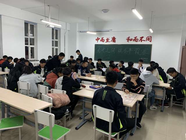 为丰富课余文化生活,10月17日,棋艺博弈社举办“方寸之间”棋类争霸赛。此次比赛设有飞行棋、跳棋、五子棋和象棋、围棋、斗兽棋项目。棋弈对阵,智谋比拼,每张棋盘桌子似乎都成了“战场”,选手们或你堵我截,或雷厉风行,或精雕细琢,尽显竞技精彩。围观的同学旁边站立,安静地共享竞技的快乐。