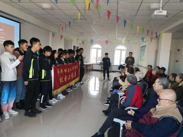 11月3日,机电工程系团总支书记王虹带领本系部分学生党员和班级学生代表以及机械本193班全体同学,来到百鹤养老院开展志愿活动。机械本193班团支书李雪佳首先带领同学们演出了小合唱,让老人们感到十分开心。有的老人上前与同学们一起唱,有的老人还表演诗歌朗诵。之后,同学们来到老人的房间,与老人唠家常、帮助打扫卫生并清理卫生间。同学们纷纷表示,以后有时间会经常来陪老人们聊天,通过这种方式尝试融入社会。